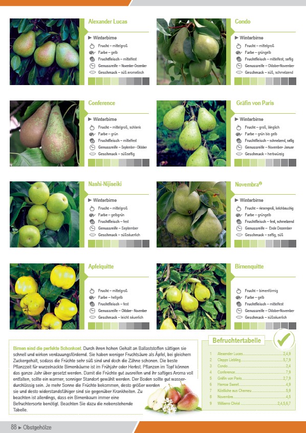 Befruchtersorte benötigt. Beachten Sie dazu die nebenstehende
