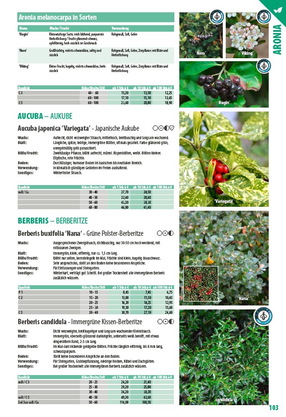 Aronia melanocarpa in Sorten