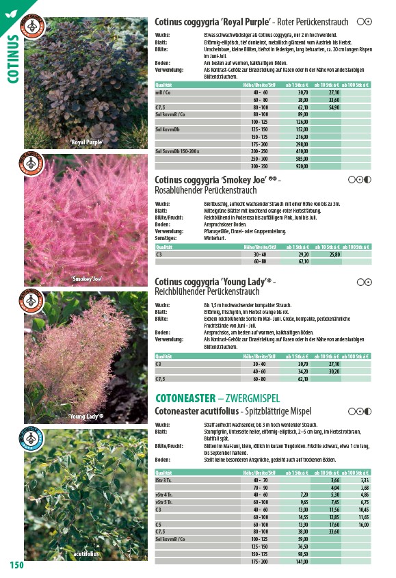 Wuchs: Etwas schwachwüchsiger als Cotinus coggygria, nur 2 m hoch werdend.