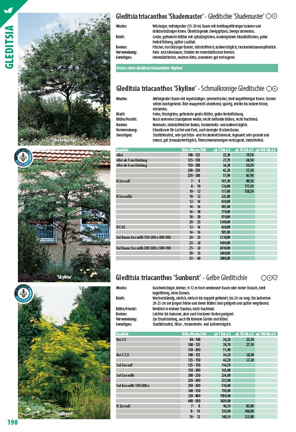Preise siehe Gleditsia triacanthos ’Skyline’