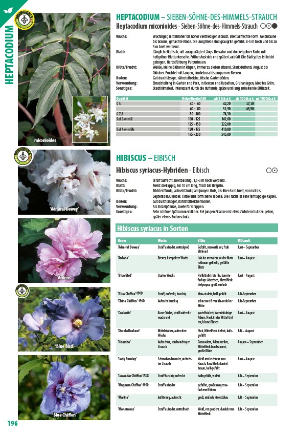 Hibiscus syriacus in Sorten
