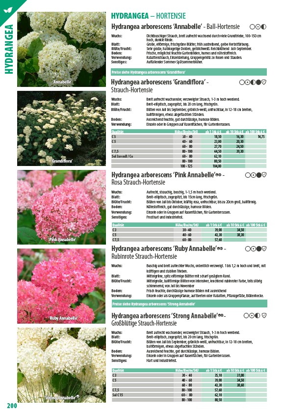 Preise siehe Hydrangea arborescens ’Strong Annabelle’