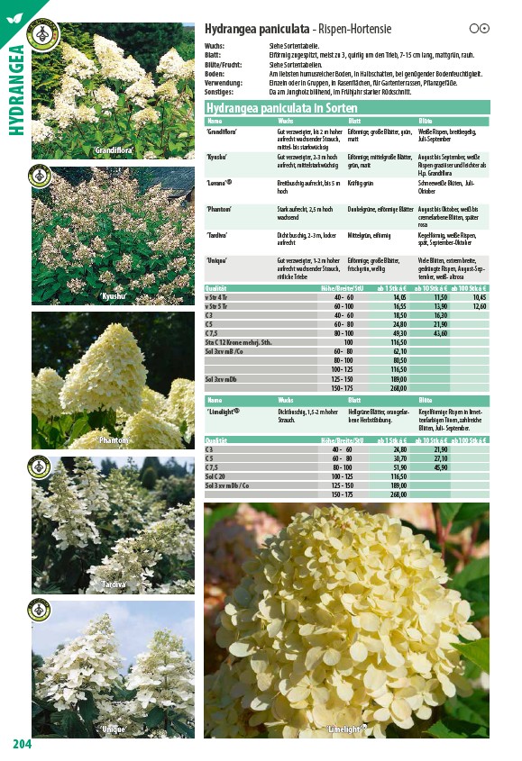 Hydrangea paniculata in Sorten