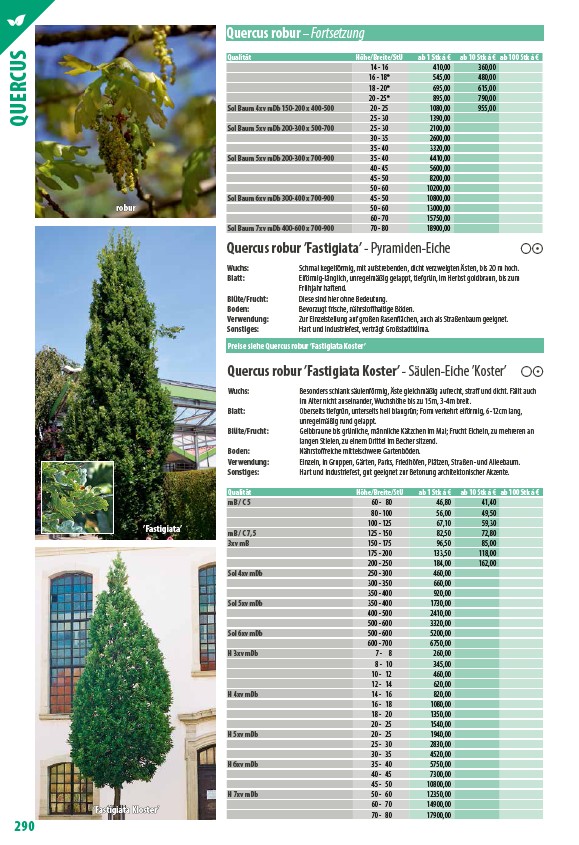 Preise siehe Quercus robur ’Fastigiata Koster’