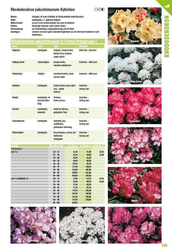 Rhododendron yakushimanum in Sorten Preisgruppe I