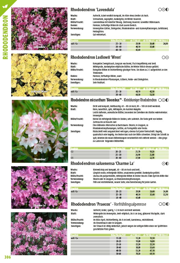 Rhododendronpflanzungen, Gefäße, als Formgehölz oder Hecke.
