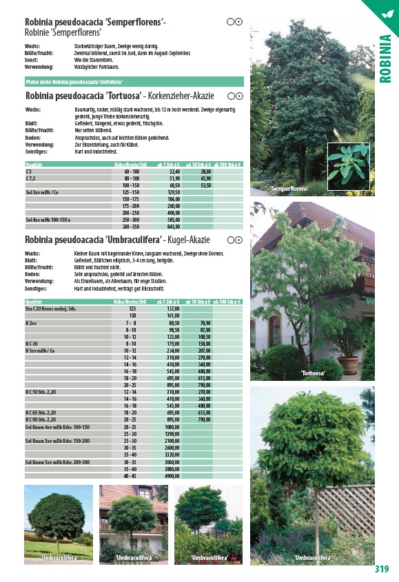 Preise siehe Robinia pseudoacacia ‘Unifoliola‘