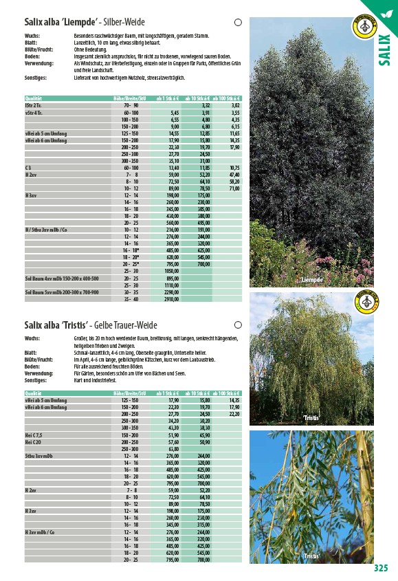 Verwendung: Als Windschutz, zur Uferbefestigung, einzeln oder in Gruppen für Parks, öffentliches Grün