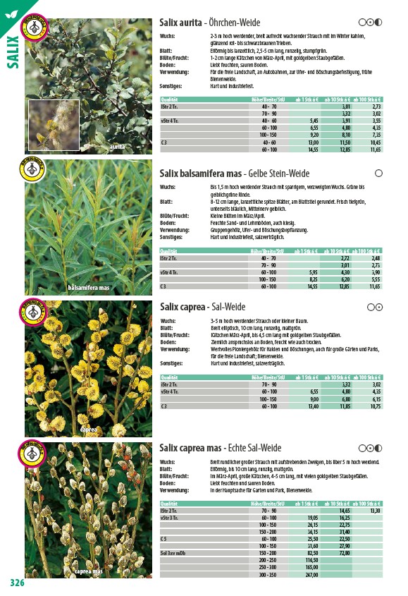 Blüte/Frucht: Kätzchen März-April, bis 4,5 cm lang mit goldgelben Staubgefäßen.