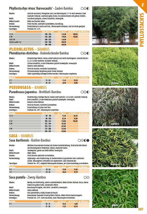 Sonstiges: Frosthart bis -22°C. Stark wachsend, daher Rhizomsperre verwenden.