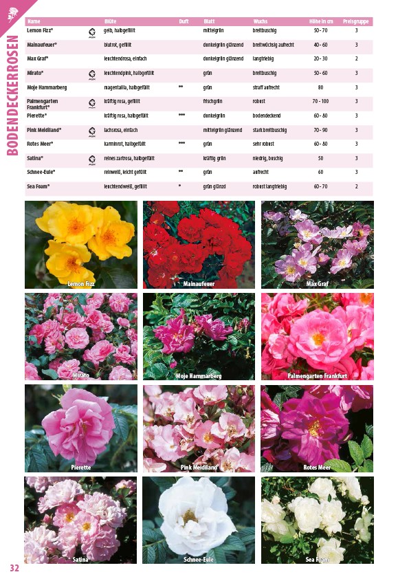 Name Blüte Duft Blatt Wuchs Höhe in cm Preisgruppe