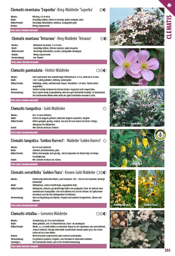 Verwendung: An größeren Spalieren, Pergolen, zum Einranken in robusteren Gehölzen.