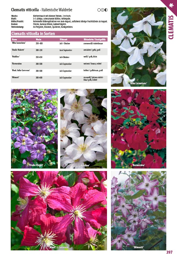 Clematis viticella in Sorten