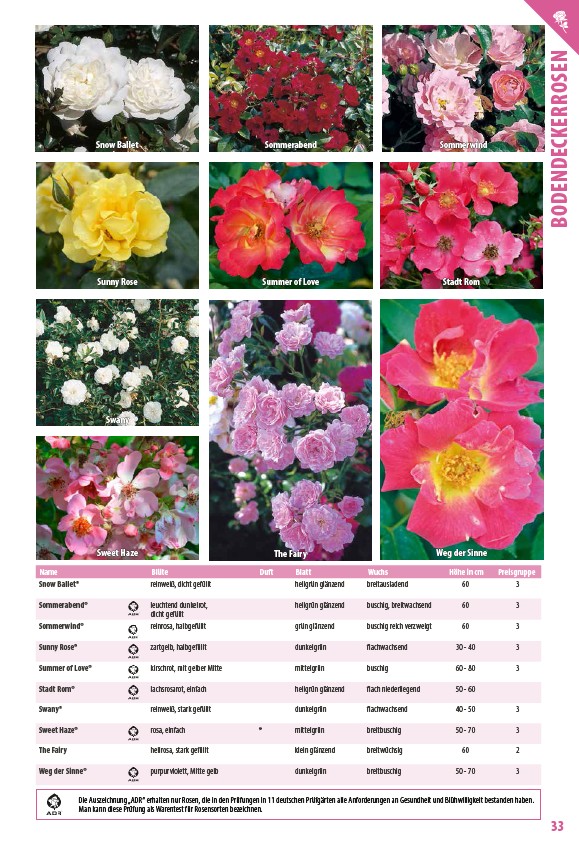 Die Auszeichnung „ADR“ erhalten nur Rosen, die in den Prüfungen in 11 deutschen Prüfgärten alle Anforderungen an Gesundheit und Blühwilligkeit