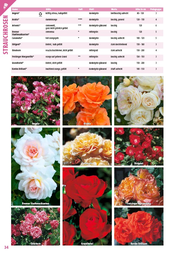 Name Blüte Duft Blatt Wuchs Höhe in cm Preisgruppe