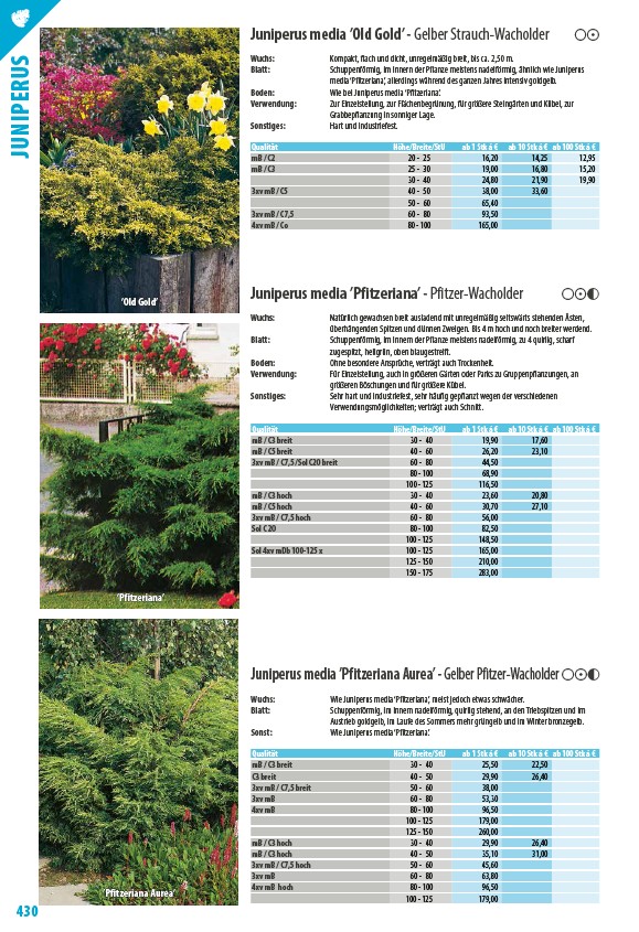 Wuchs: Wie Juniperus media ‘Pfitzeriana’, meist jedoch etwas schwächer.