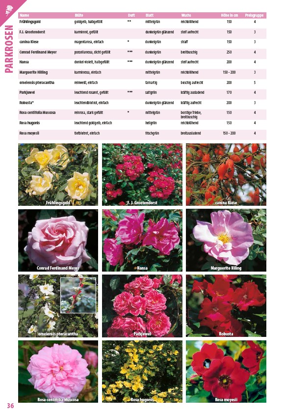 Name Blüte Duft Blatt Wuchs Höhe in cm Preisgruppe