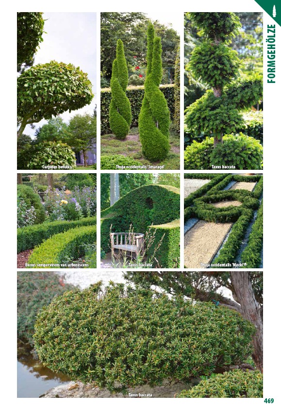Carpinus betulus Buxus sempervirens var. arborescens Thuja occidentalis 'Smaragd' Taxus baccata Taxus baccata Taxus baccata Thuja occidentalis 'Mecki' FORMGEHÖLZE 469