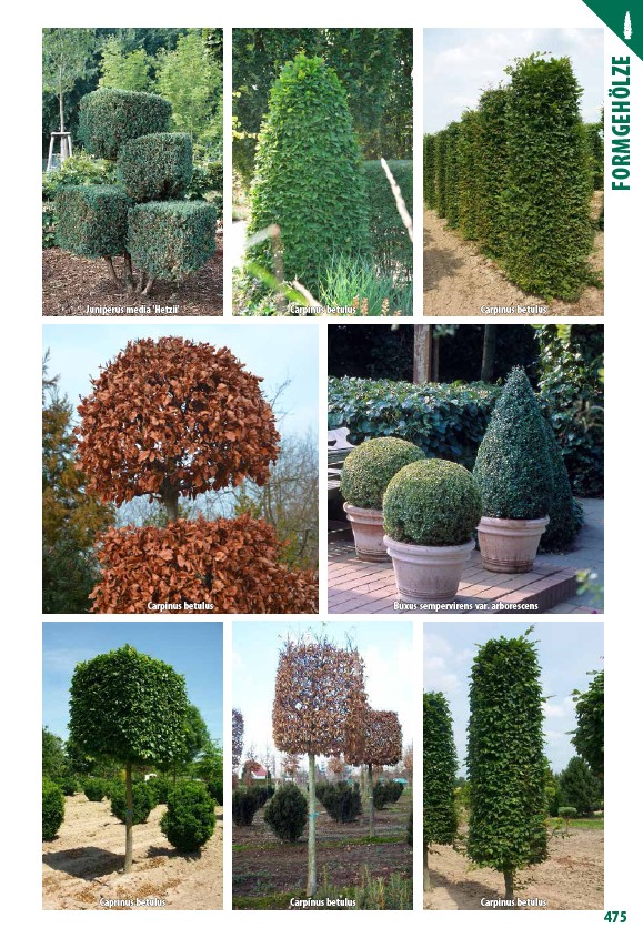 Juniperus media 'Hetzii' Carpinus betulus Carpinus betulus Carpinus betulus Buxus sempervirens var. arborescens Caprinus betulus Carpinus betulus Carpinus betulus FORMGEHÖLZE 475