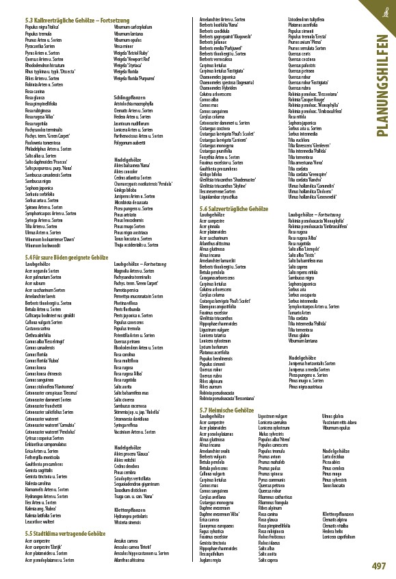 Acer platanoides u. Sorten Aesculus hippocastanum u. Sorten