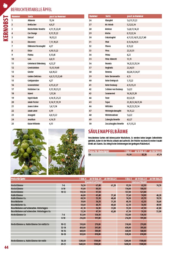 Preise für Säulenäpfel 1 Stck. € ab 10 Stck. à € ab 100 Stck.à €