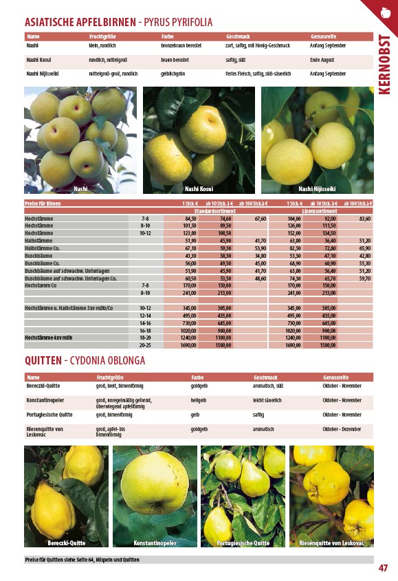 Preise für Quitten siehe Seite 64, Mispeln und Quitten