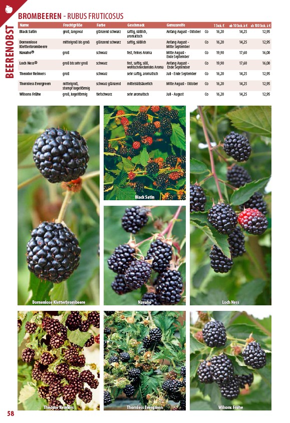 Wilsons Frühe groß, kegelförmig tiefschwarz sehr aromatisch Juli - August Co 16,20 14,25 12,95