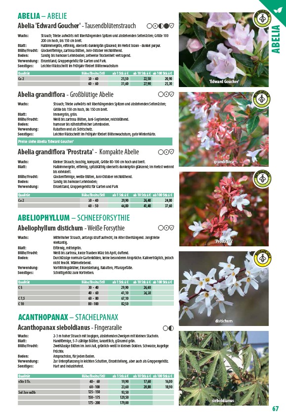 Wuchs: Strauch; Triebe aufwärts mit überhängenden Spitzen und abstehenden Seitenästen; Größe 100