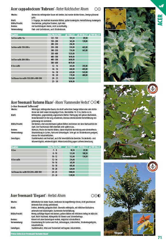 Preise siehe Acer freemanii ‘Autumn Blaze’