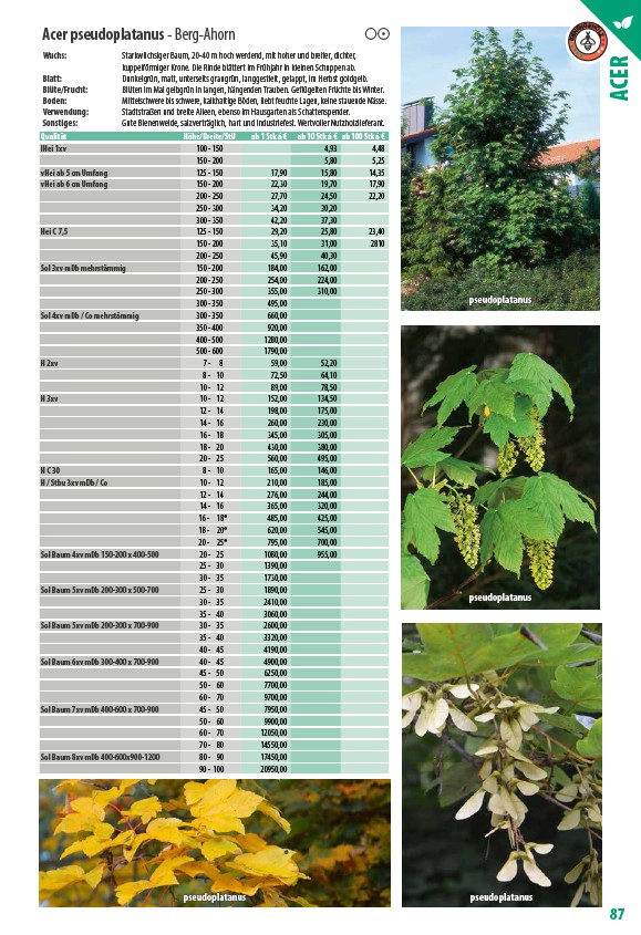 Verwendung: Stadtstraßen und breite Alleen, ebenso im Hausgarten als Schattenspender.